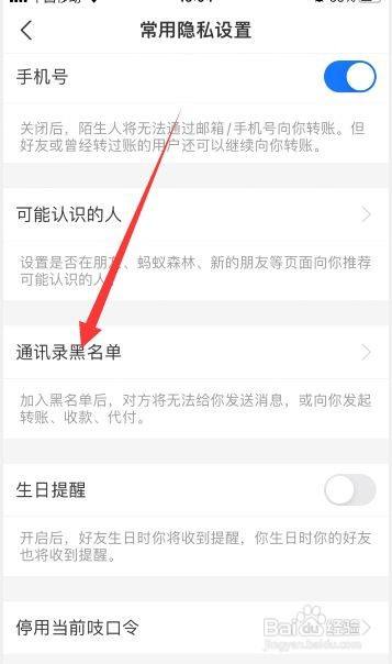 进入后,点击“通信录黑名单”选项。