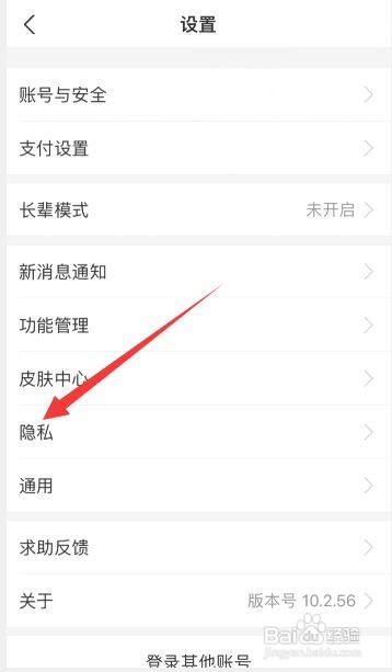 在设置界面,点击“隐私”选项。