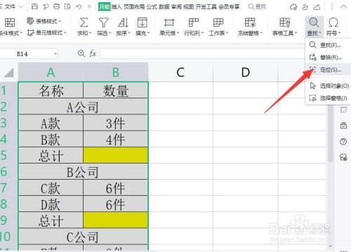 首先,我们选中整个数据区域,点击查找列表中的定位选项打开。