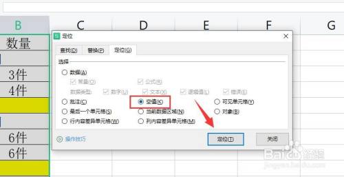接下来,从打开的定位界面中勾选空白值选项,点击确定按钮就可以选中表格中的所有的空值。