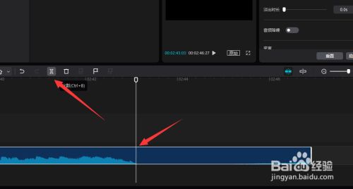 在此,我们直接将时候轴移动到波形呈现的位置,点击裁剪按钮,将响应的视频变得裁剪失落,之后就可以将对应的无声音片段删除失落。