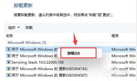 6.最后鄙人拉页中找到KB500430更新,右键卸载即可