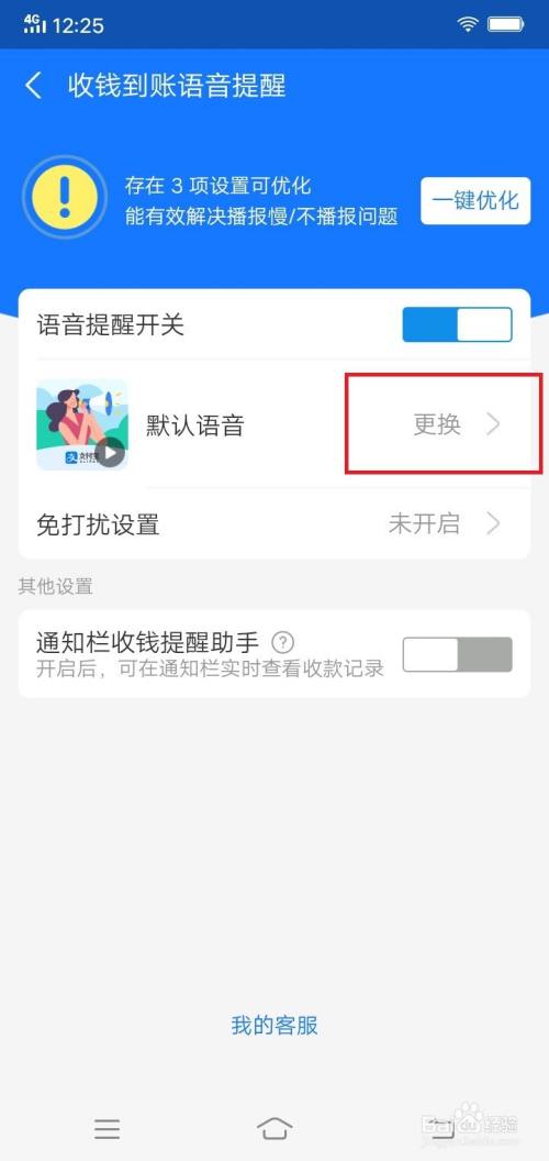 点击收钱到账语音提醒选项。