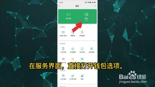 在办事页面,点击钱包。
