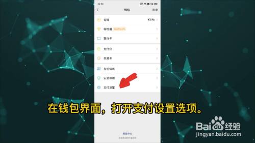 在钱包页面,点击支付设置。