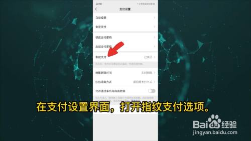 在支付设置页面,点击指纹支付。