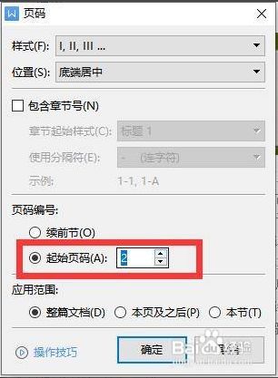 此外,我们点击从头编号下拉列表,从中选择页码编号设为输入框中,我们设置当前页码的肇端编号。