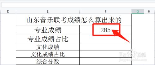 首先在【山东音乐联考绩绩怎么算出来的】表格中输入【专业成就】,如下图: