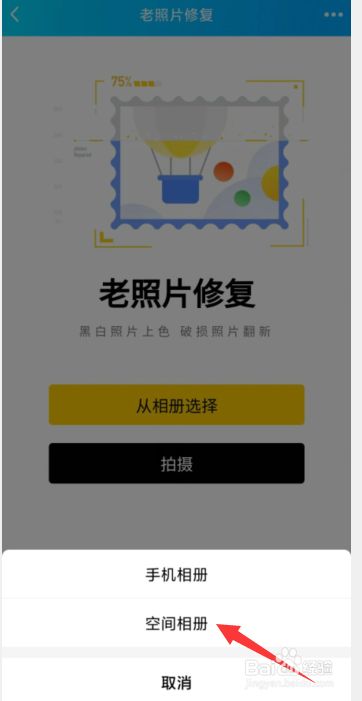 进入老照片修复页面,点击【从相册选择】。(如图所示)