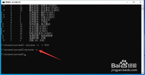 到打开如图所示的号令提醒符界面后,我们直接输入shutdown号令已查看有关主动关机号令的具体利用方式