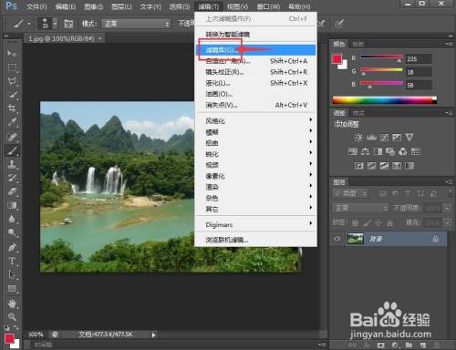 点击滤镜菜单,在打开的下拉菜单中点击滤镜库;