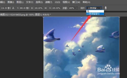 然后我们点击选择菜单中的内容识别填充选项,并在其属性界面中将之前所保留的选区设置为保留选区。