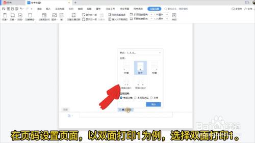 在插入页码页面,点击双面打印1。