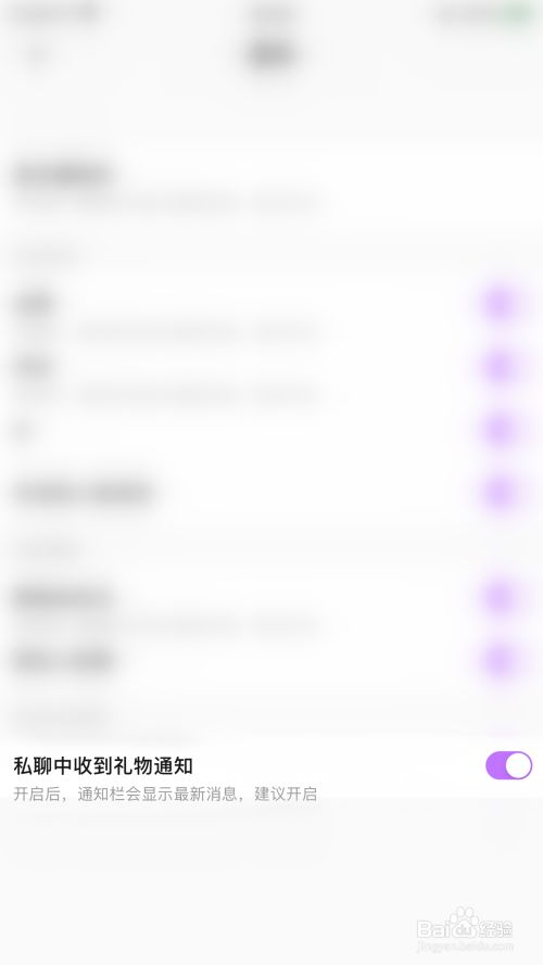 新动静通知设置界面点击”私聊中收到礼品通知“后面的圆点