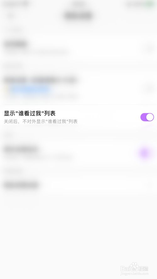 隐私设置界面点击“显示“谁看过我”列表”后面的圆点