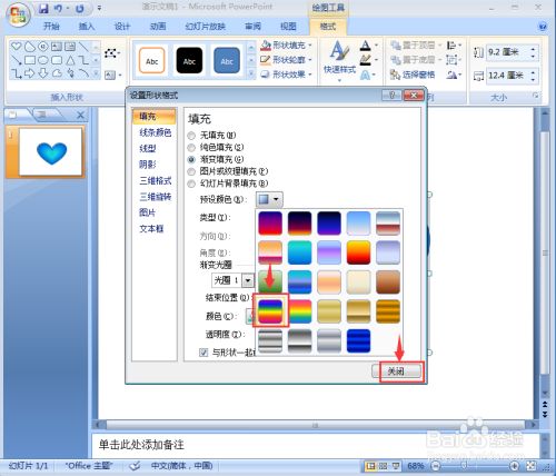 点击渐变填充,选择预设下的彩虹出岫;