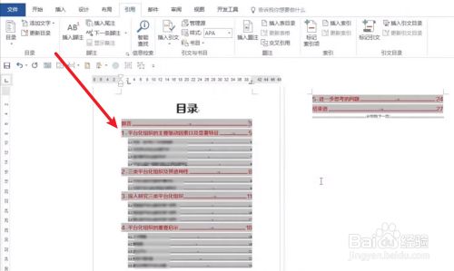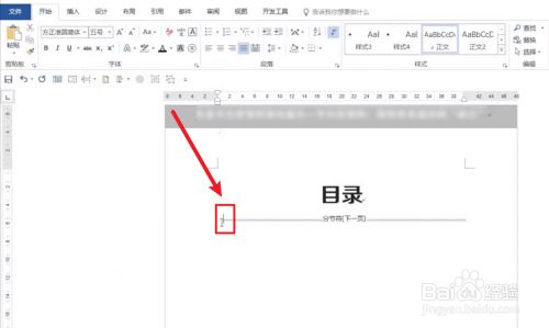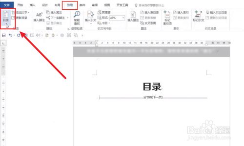 点击功能区左侧的目次。