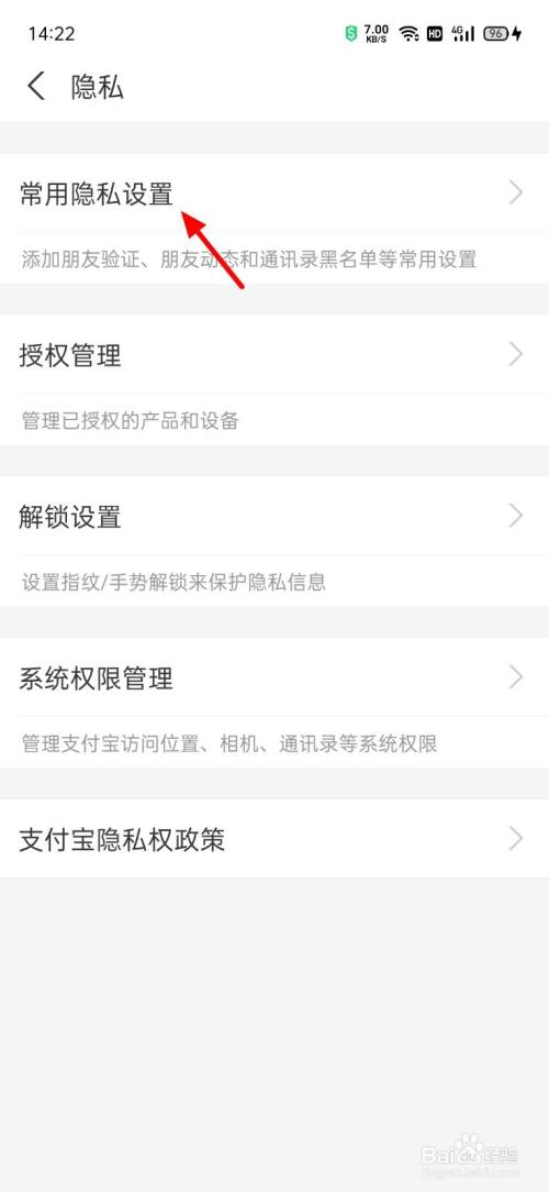在隐私页面,点击常用隐私设置。