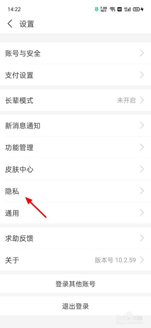 在设置页面,点击隐私。