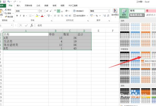 从中选择一种表格样式进行应用,在此还需要设置表格的数据区域。