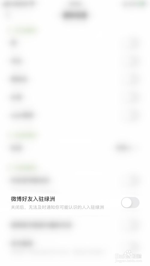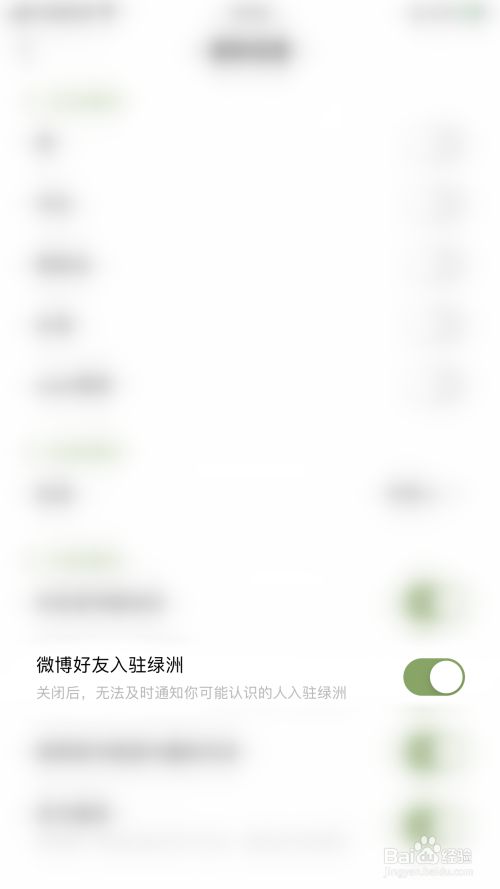 “微博老友入驻绿洲”后面的圆点变为绿色即暗示启用绿洲微博老友入驻绿洲通知当作功