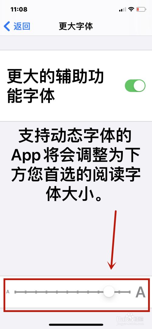 最后,先将下方“A”标的目的右拉到合适的位置,如拉到最右方仍然感觉字体不敷大,则可以打开上方的【更大的辅助功能字体】,再对下方的“A”标的目的右调整找到合适的格局字体巨细即可。