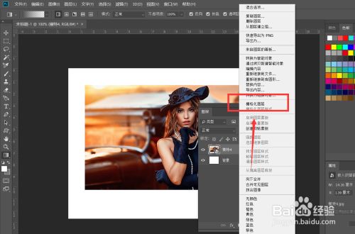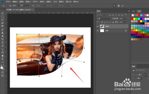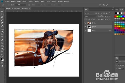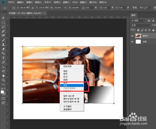 我们继续按ctrl+t自由变换图像,右击选择【变形】,建造照片的投影。