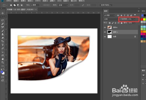 最后,我们降低图层不透明度,这样,照片翻角结果就建造完当作了。