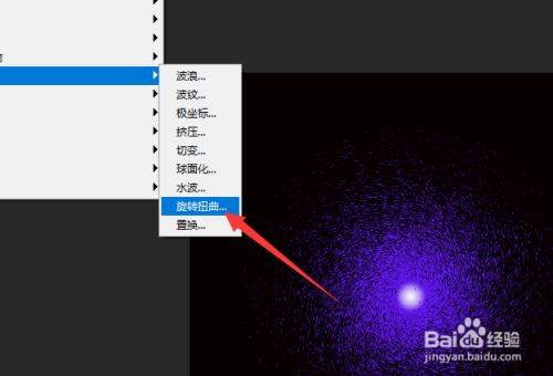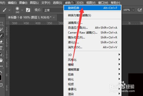 在滤镜下在扭曲的子菜单选择”扭转扭曲“选项