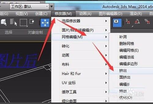 选中图形后点击——点窜器——收集编纂器——挤出;