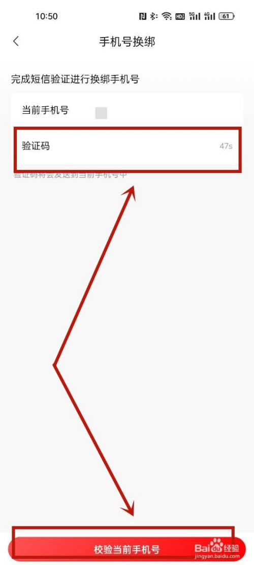 填写验证码,点击验证当前手机号。