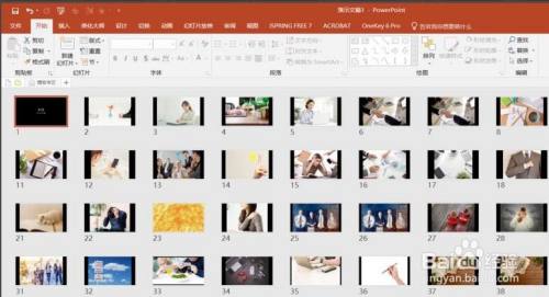 接下来我们切换到纲领模式,此时就可以看到,当前PPT中所插入的所有的图片,在此,我们切换到动画选项卡,选择一种PPT切换模式。