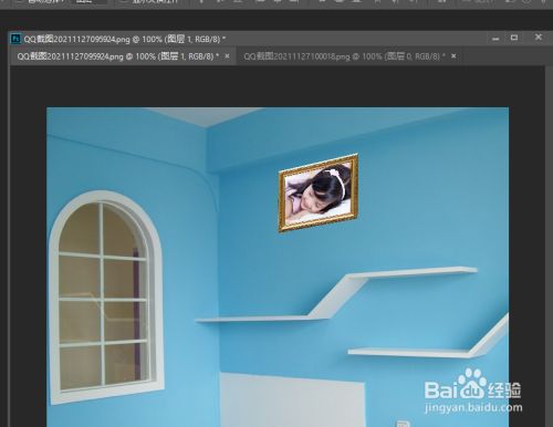 接下来,我们将所复制的贴图直接移动到矩形框内,将主动完当作立体墙面的贴图操作。