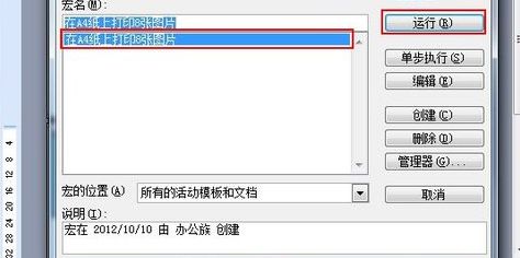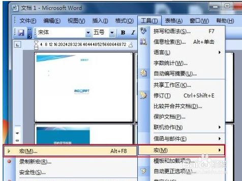 再回到Word文档界面,单击菜单栏【东西】——【宏(M)】——【宏(M)】选择适才输入的名称点击【运行】即可。