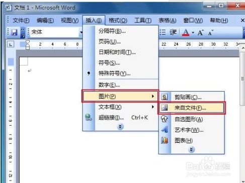插入要打印的图片,点击菜单栏【插入】——【图片】——【来自文件】。