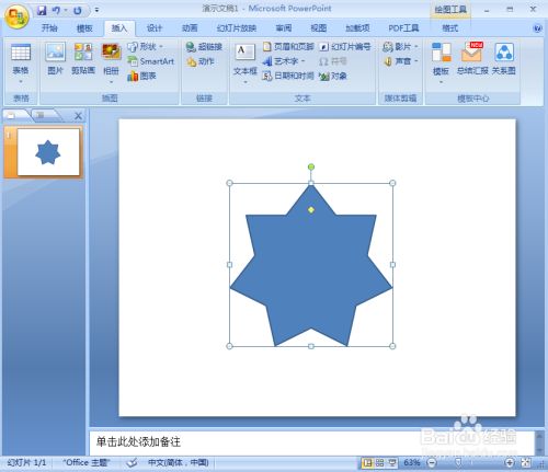 点击插入菜单,选择外形东西中的七角星;