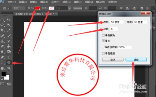 新建图层,选择【多边形东西】,填充为【红色】,描边为【不描边】,点击鼠标绘制五角星。快捷键【Ctrl T】调整巨细,移动东西到合适的位置。