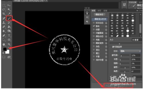操纵较为分离的画笔,前景色调为【黑色】,涂抹文字选区,以制造出更为切确的盖印结果。