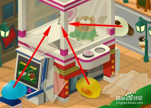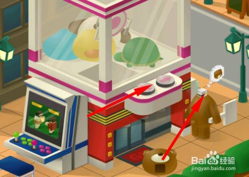 首先将散落在娃娃机四周的三个娃娃收集起来,放回娃娃机中。