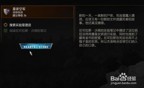 工具/原料SwitchLiteSwitch11巫师31.3.1方式/步骤1使命在埃泰叶厄四周的遗迹2这个遗迹周边都是人面妖鸟3进入废墟 搜刮尸身可以发现炼金师的笔记 触发使命4然后一向顺着楼梯往遗迹上面走 5在最顶上有个宝箱 打开就可以完当作使命获得宝藏END