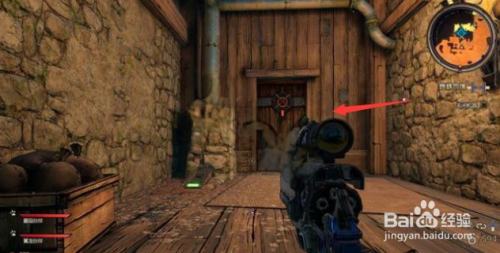 第五步,如图所示,您需要找到锻造所的楼梯,打开这里的木门,才能达到房子外侧。