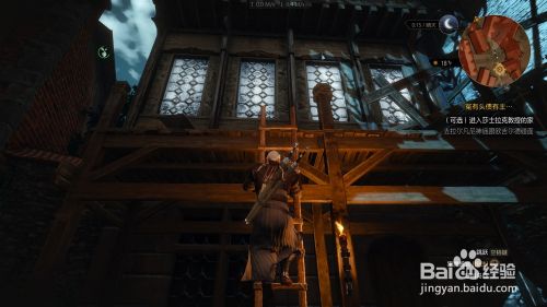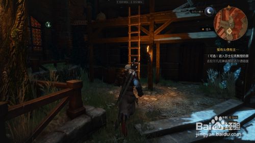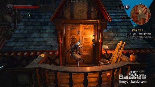 传授家门紧锁 需要爬上对面的木梯 直到屋顶 再跳到阳台上 阳台的门需要用法印吹开