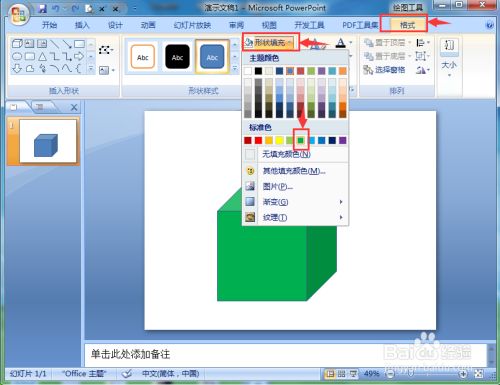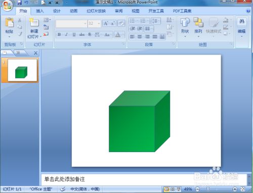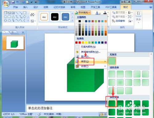 我们就在powerpoint中建立好了一个绿色渐变正方体。