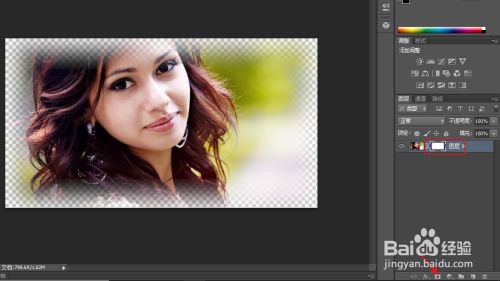 此刻点击图层面板下面的添加“图层蒙版”图标。即可看见柔和图像边缘结果。