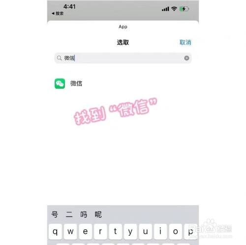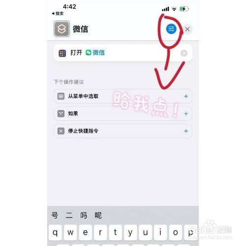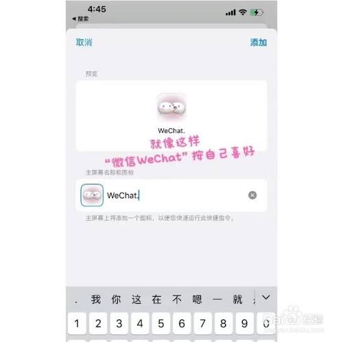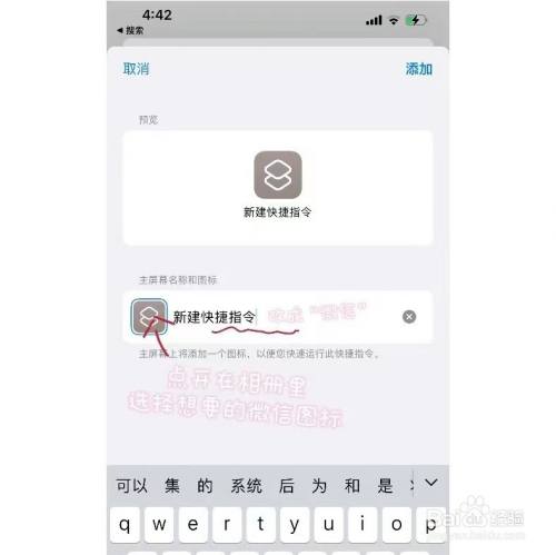 点击方框在相册选择想要的微信图标,将“新建快捷指令”文字改当作【微信】。