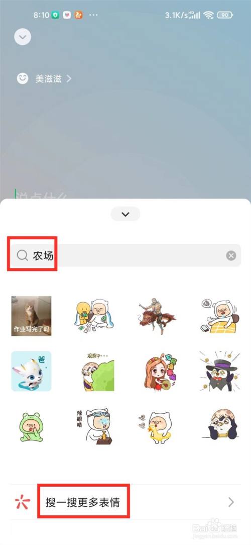 搜刮“农场”,点击搜刮成果底部“搜一搜更多脸色”。