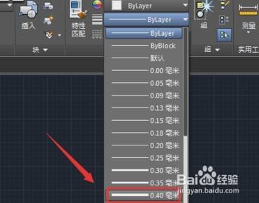 利用直线号令绘制一个图形,选择图形,在线宽设置0.4毫米。