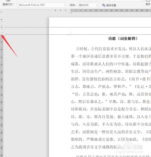 有时我们可能将两页文档需要打印到一张纸上,对此,我们可以勾选如图所示的标尺选项,当标尺显示出来之后,就可以对页面的尺寸进行调整,以确保将文档打印输出到一页纸。