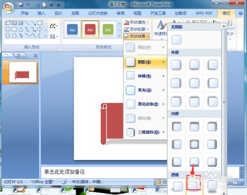 我们就在powerpoint中给横卷形添加上了外形样式和暗影结果。