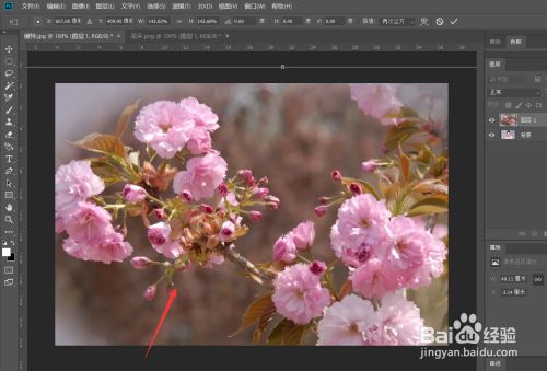 我们按照想要添加的空气结果,找一张有色彩的风光图片,好比小编想添加粉色浪漫的空气结果,那么我就利用了下图所示的春天花朵,用椭圆选框东西设置好成仙值,框选想要的内容。
